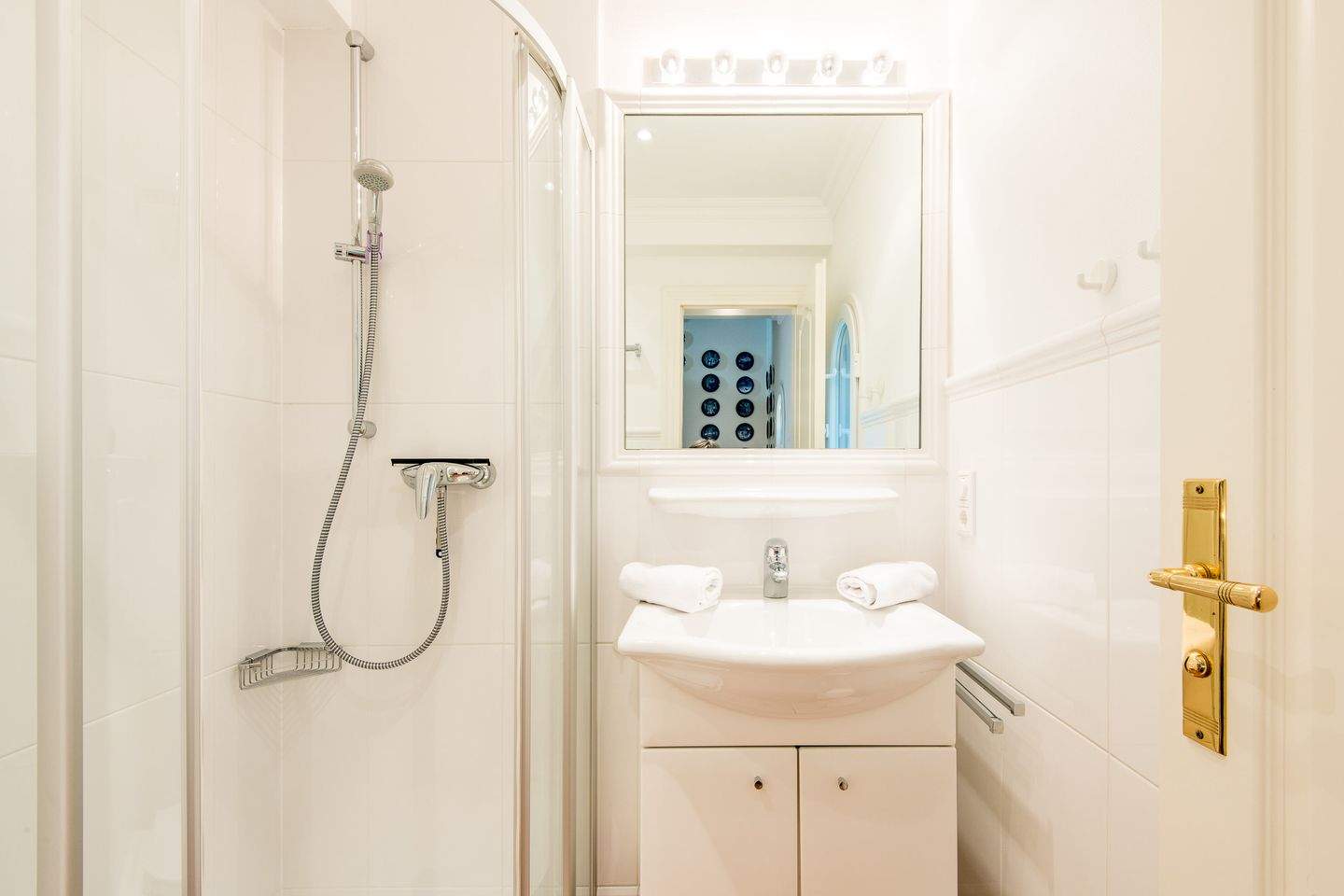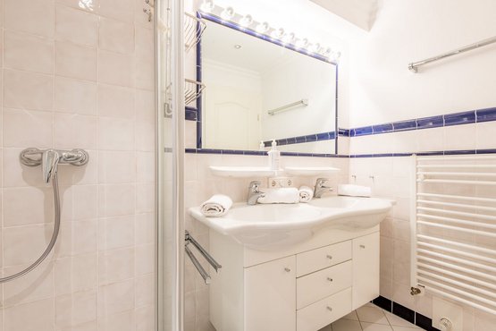 Zwei Badezimmer (Duschbad) mit Dusche, WC und Tageslicht.