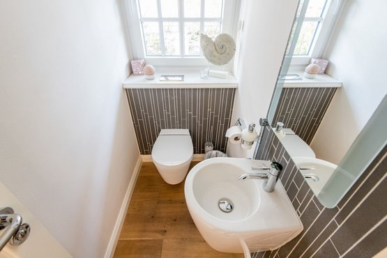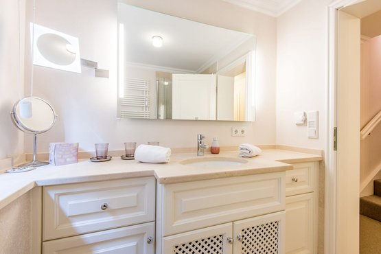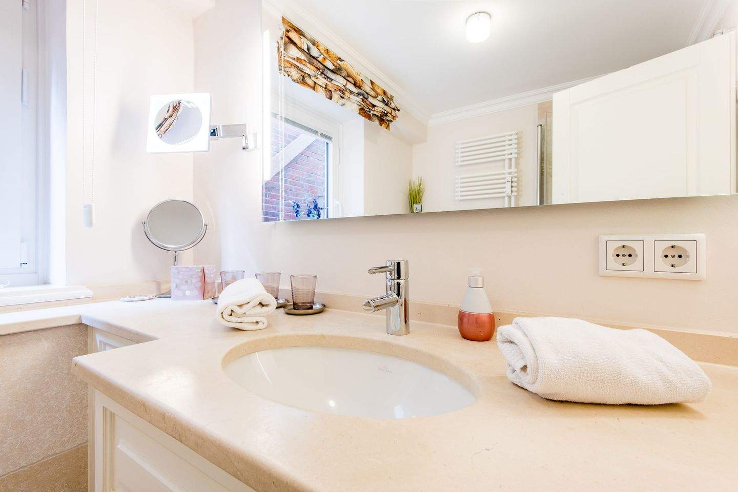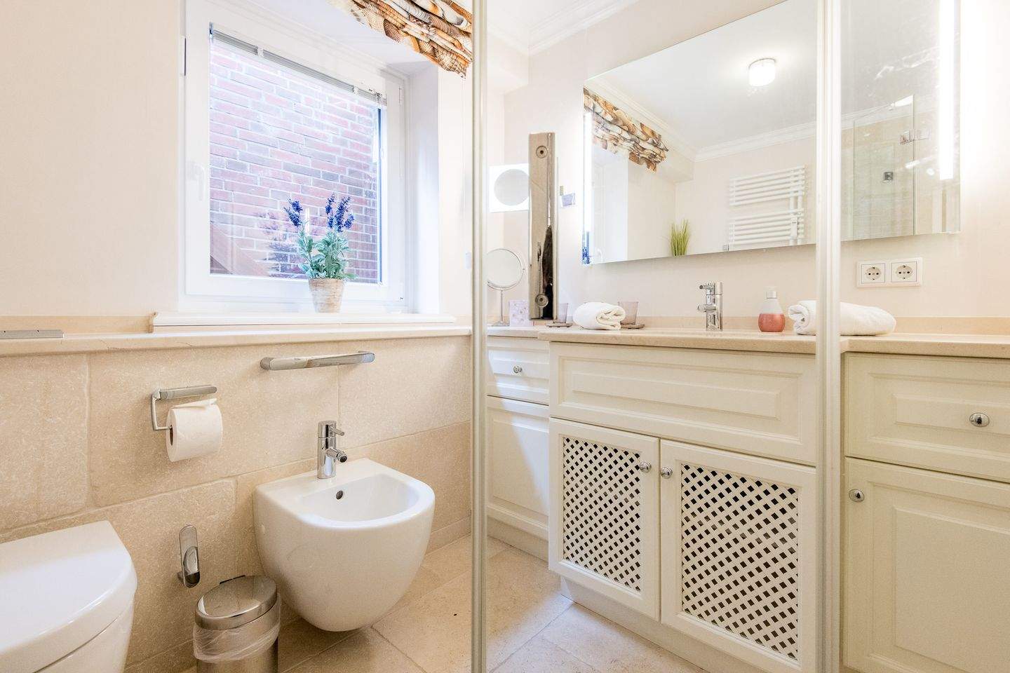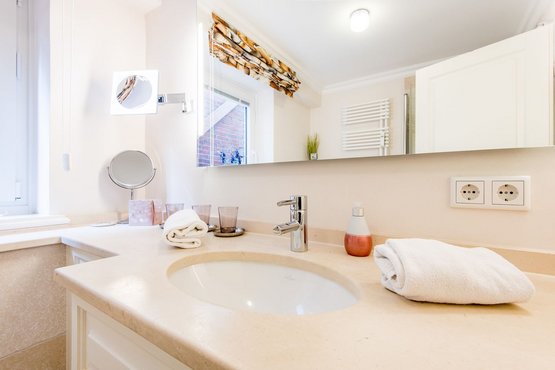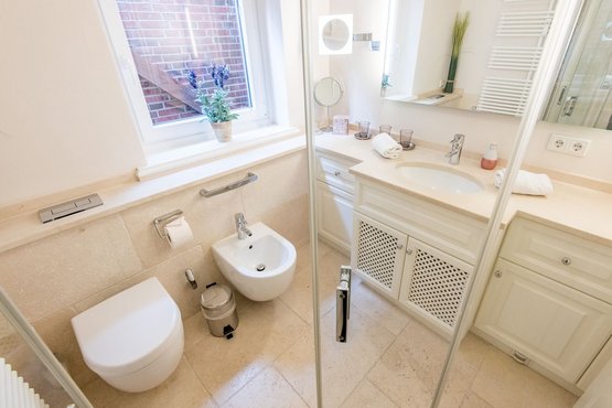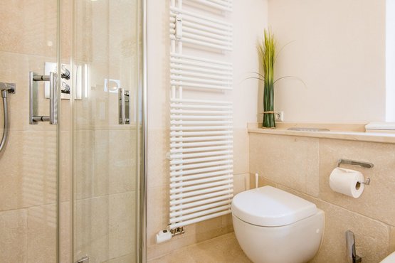 1. Badezimmer (Duschbad) mit großzügiger Dusche und Handtuchwärmer