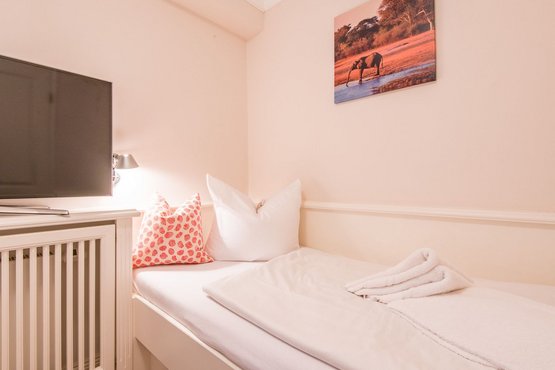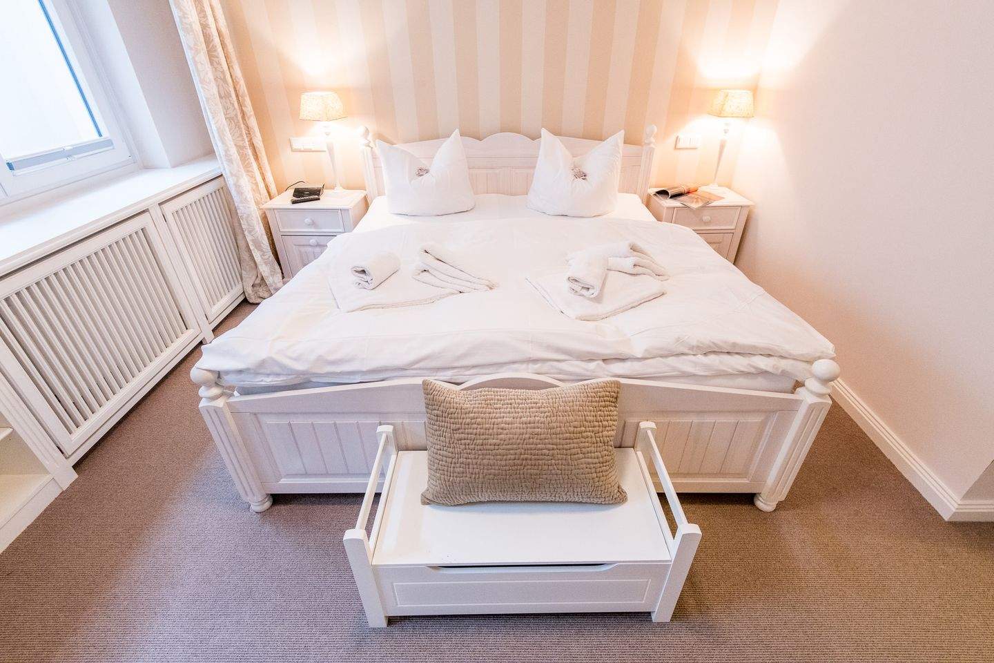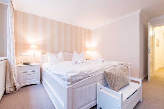 1. Schlafzimmer mit Doppelbett (2x 90 x 200) und TV.