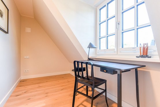 Es steht ein kleines Arbeitszimmer zur Verfügung, in dem Sie in Ruhe auch mal Ihren Homeofficetätigkeiten nachkommen können.