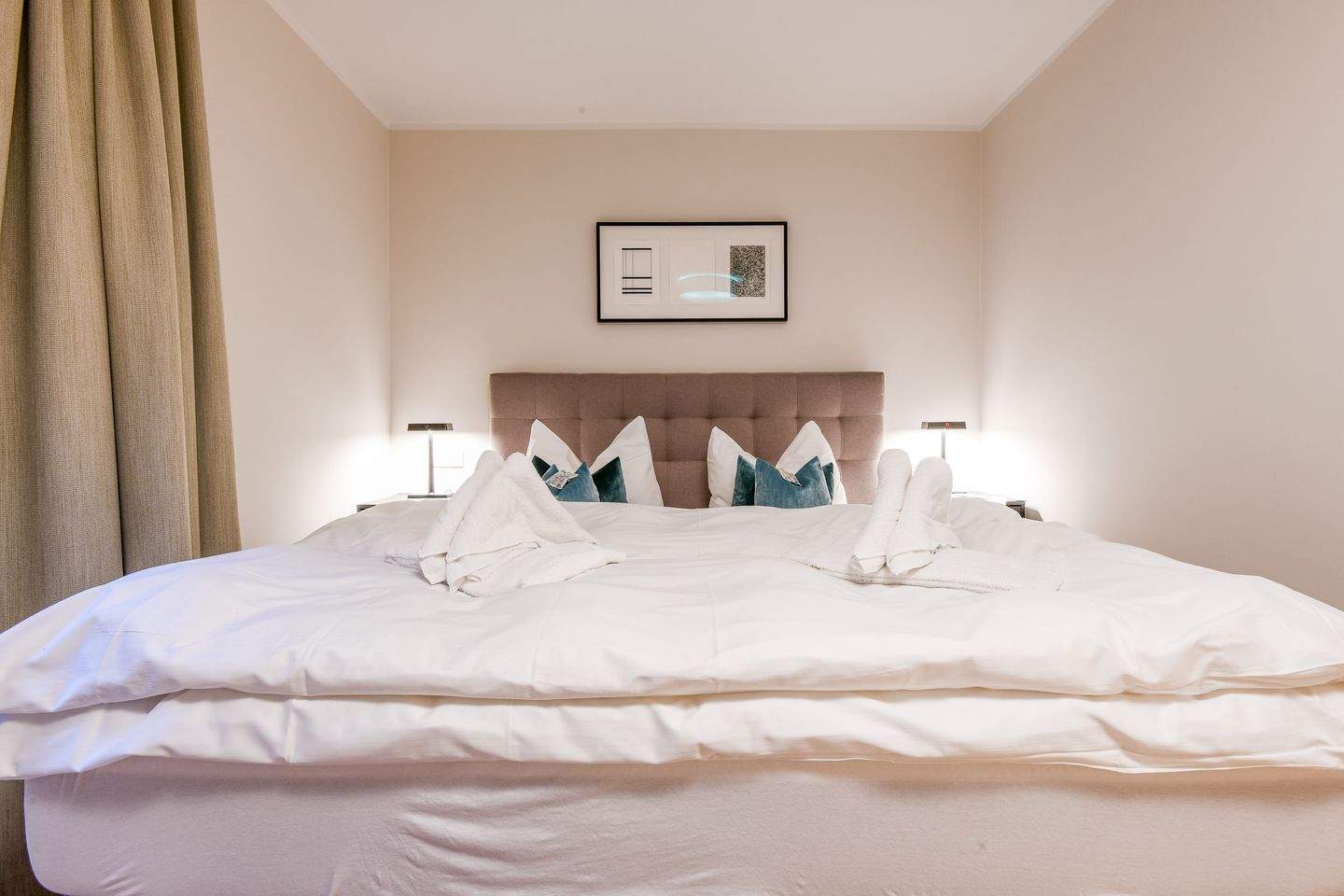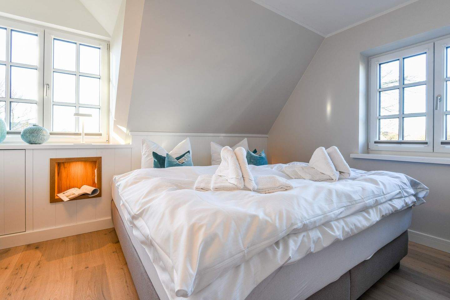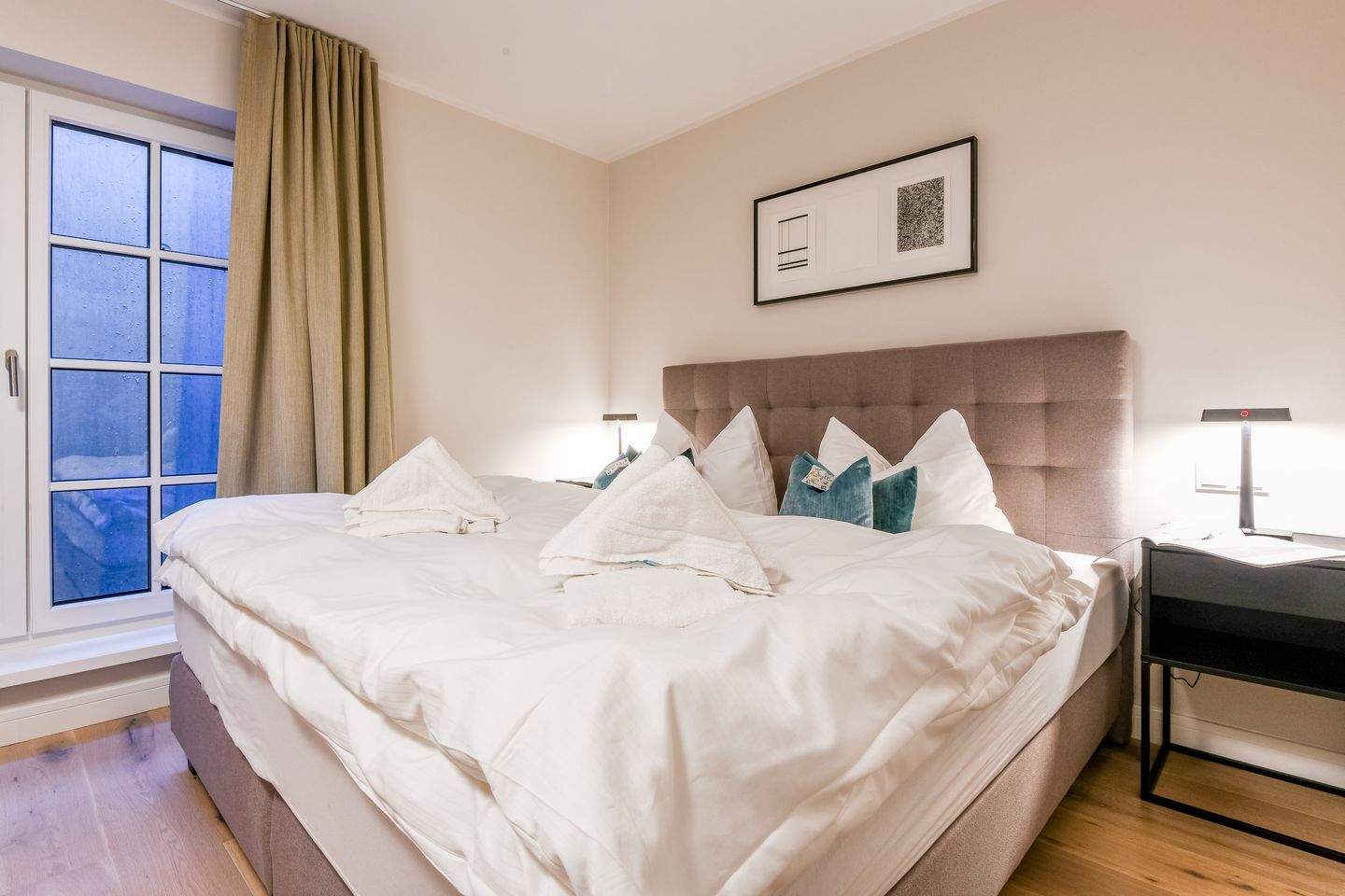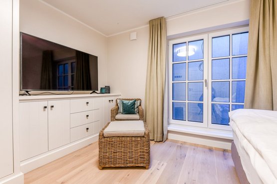 1. Schlafzimmer mit Boxspring-Doppelbett (180 x 200 cm), eingebautem Kleiderschrank, TV.