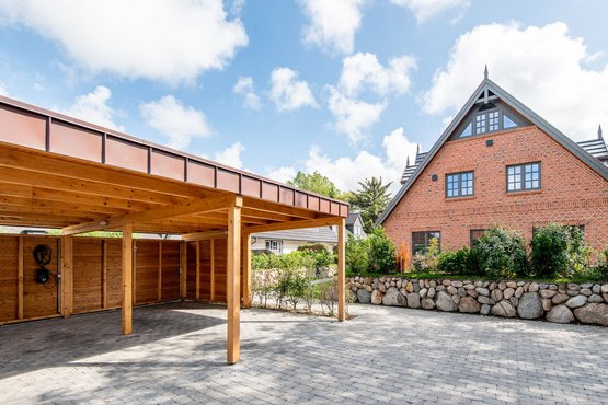 Ein PKW-Stellplatz mit E-Ladestation (gegen Gebühr) ist vorhanden. Für Fahrräder steht ein Fahrradständer zur Verfügung.