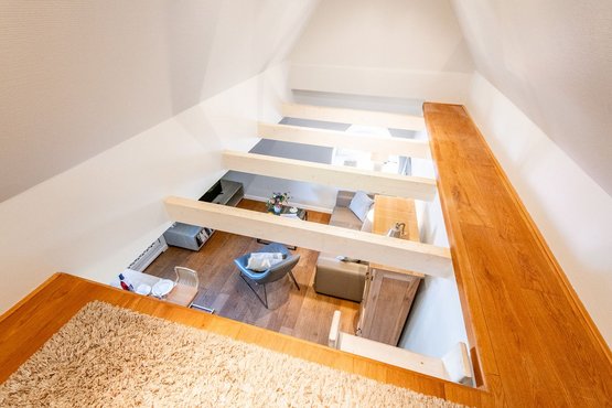 2. Schlafzimmer mit Einzelbett (140x200cm) auf der Empore.