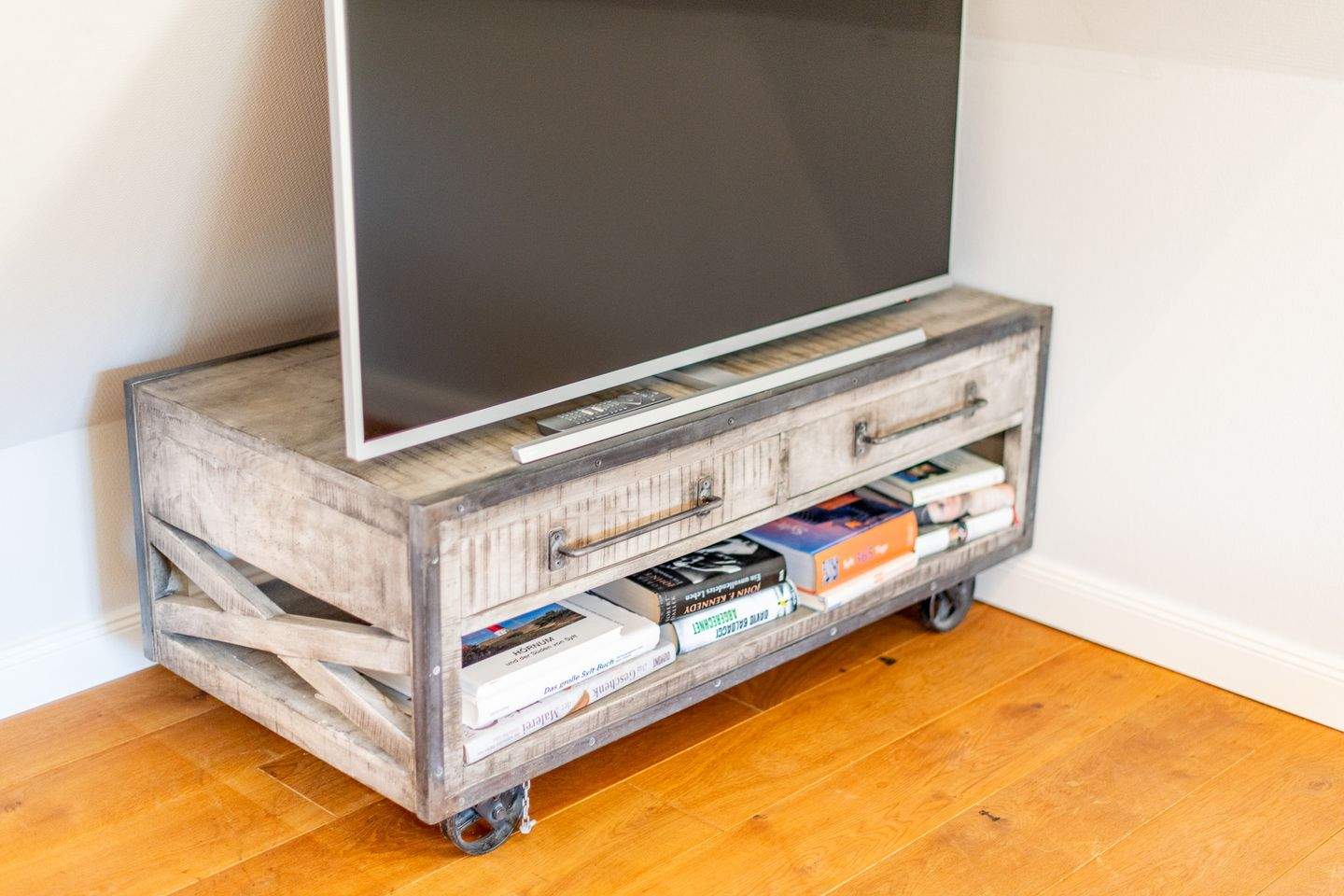 Die offene Balkenlage im Wohnzimmer schafft ein wundervolles, weitläufiges Wohn- und Raumklima, und vermittelt das Gefühl, wirklich unter Reet zu wohnen.