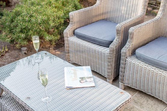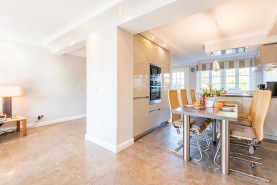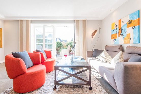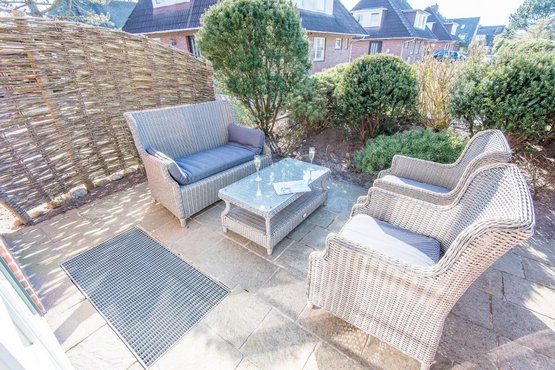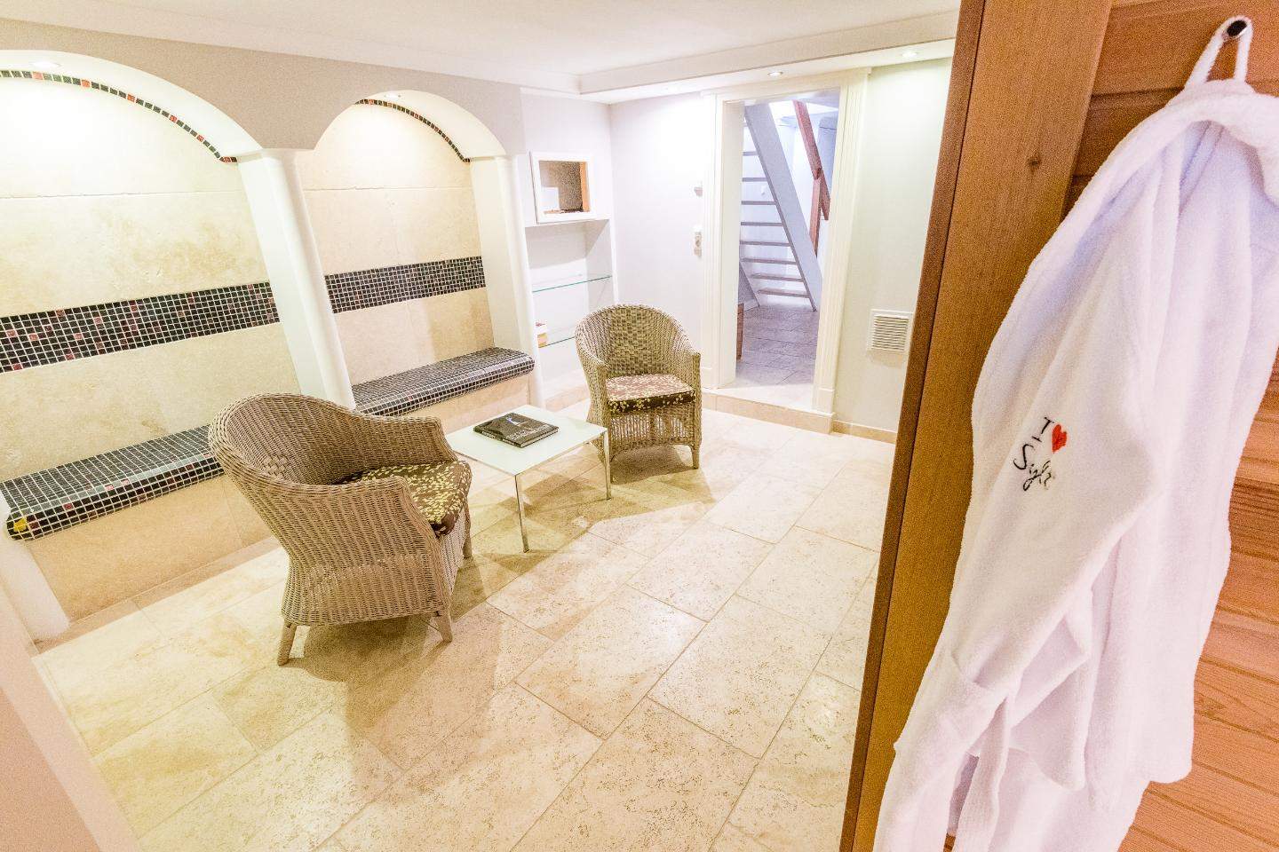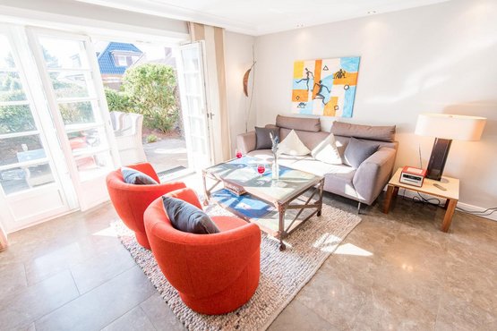 Höchster Komfort und sehr ruhige Lage in Wenningstedt auf Sylt. Mit privatem Wellnessbereich mit Sauna und Dusche. Rauchen nicht gestattet. Großes Wohnzimmer mit Sofa, Sesseln und TV.