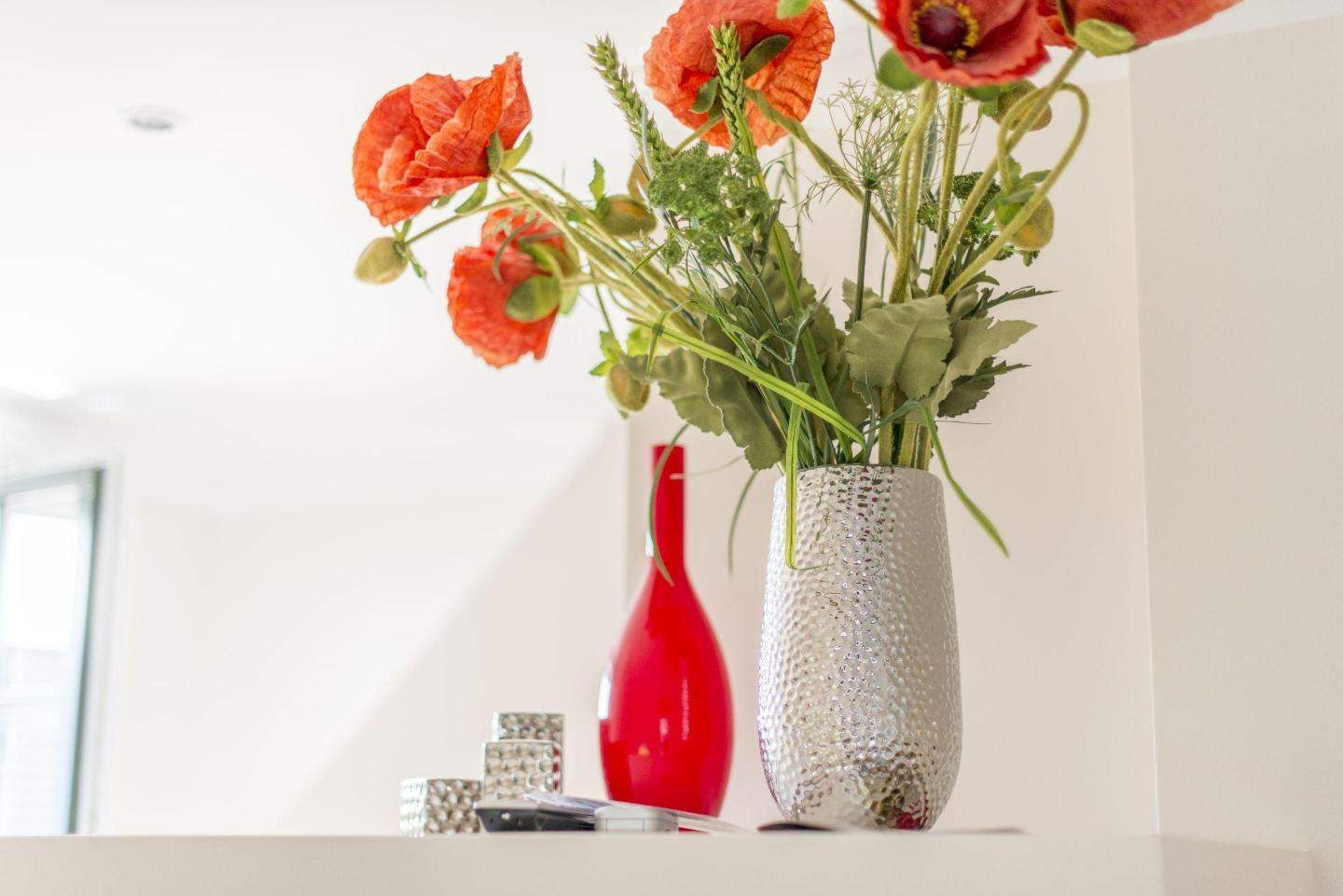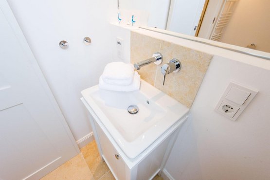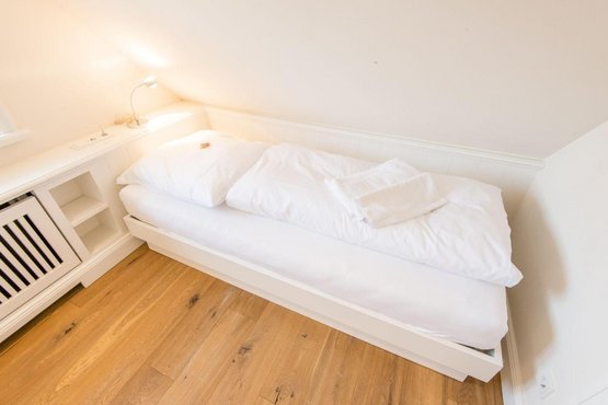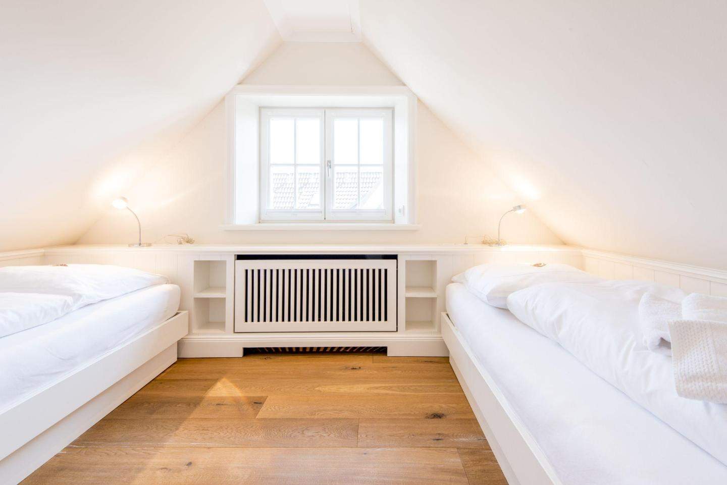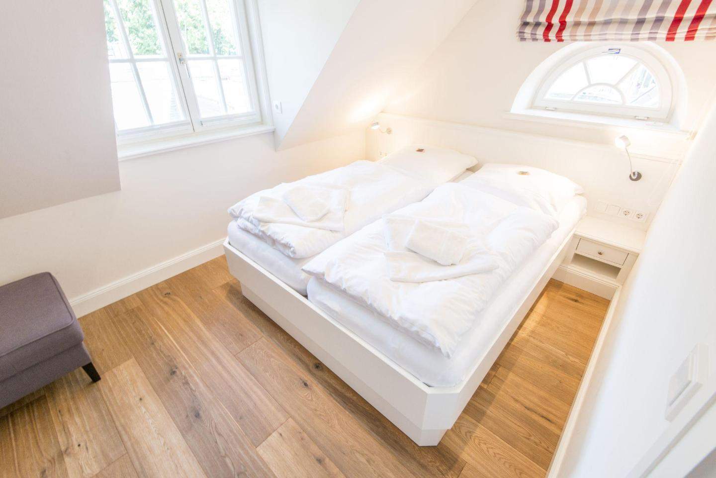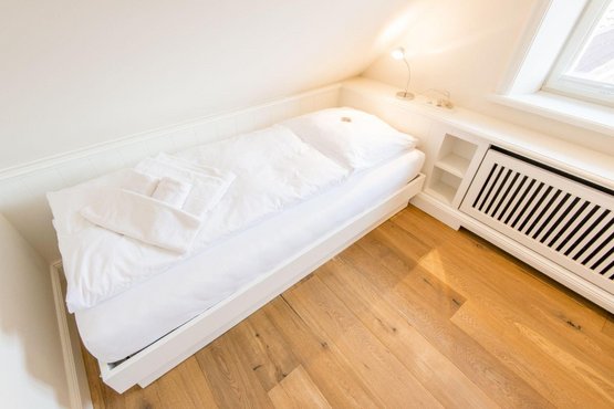 Exklusive 3-Zimmer-Ferienwohnung im 'Haus Victor' mit ca. 58 m² über 2 Ebenen (OG, DG) für bis zu 4 Personen. Sehr modern und komfortabel. Strandnahe Lage in Westerland auf Sylt. Kamin, Balkon. Wellnessbereich mit Sauna im Haus. Nichtraucherwohnung. Wohnzimmer mit Sofa, Sessel, TV und Kamin. Esstisch für 4 Personen. Direkter Zugang zum möblierten Balkon nach Süden.