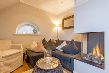 Sehr modern und komfortabel. Strandnahe Lage in Westerland auf Sylt. Kamin, Südbalkon. Wellnessbereich mit Sauna im Haus. Nichtraucherwohnung. Wohnzimmer mit Ecksofa, Sessel, TV und Kamin. Esstisch für 4 Personen. Direkter Zugang zum sonnigen, möblierten Balkon nach Süden.