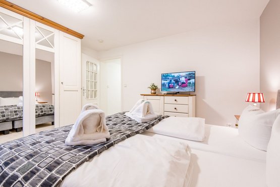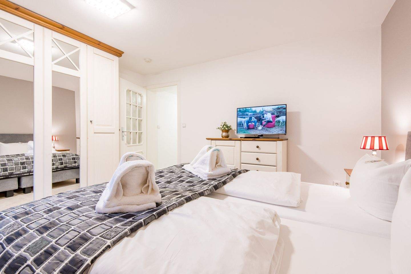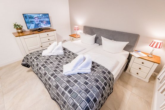1. Schlafzimmer mit Boxspringbett (180x200) Kleiderschrank und TV