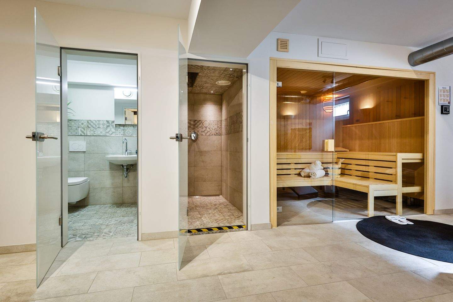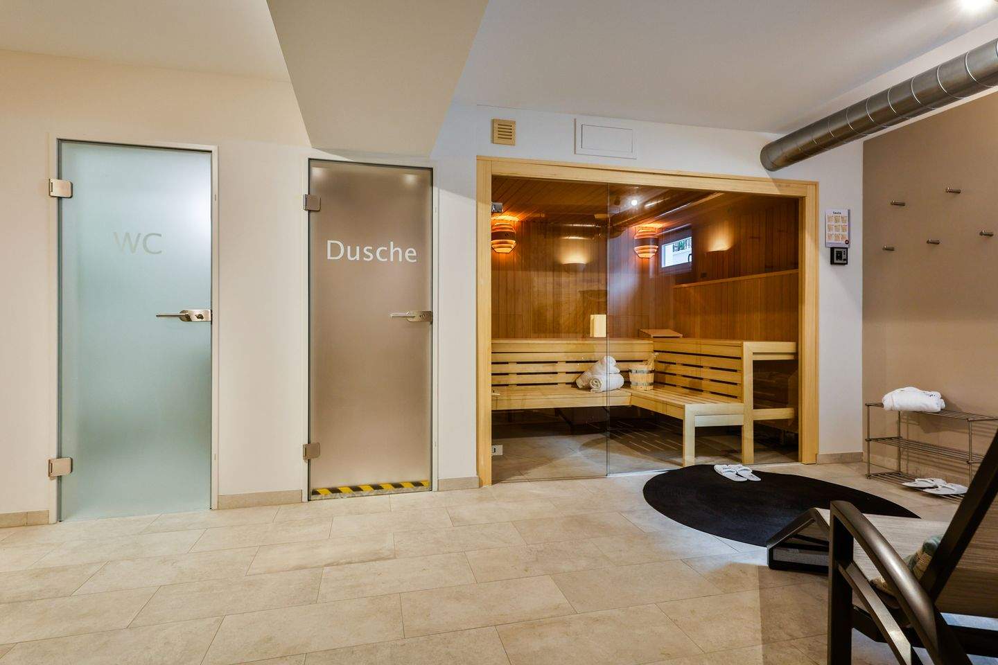 Ansprechender Saunabereich im UG, der Ihnen täglich in der Zeit von 16:00-20:00 Uhr zur Verfügung steht.