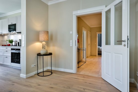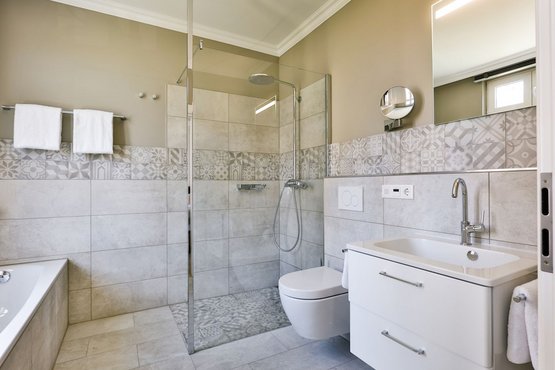 Barrierefreiheit: Die Wohnung und das Treppenhaus sind barrierefrei gestaltet. Rollstühle und Rollatoren können im Treppenhaus abgestellt werden und es besteht die Möglichkeit, diese hier kostenfrei an Steckdosen aufzuladen. Die Bäder bieten viel Platz und haben ebenerdige Duschbereiche. Der Zugang zur Loggia/Balkon ist jedoch nicht barrierefrei.
