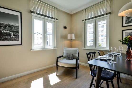 Moderne 3-Zimmer Ferienwohnung im 1. OG im Logierhaus Jonna mit 90 m² für 2-4 Personen in zentraler und trotzdem ruhiger Lage in Westerland, nur ca. 50 m von der Einkaufsmeile Friedrichstraße und ca. 200 m von der Strandpromenade entfernt.