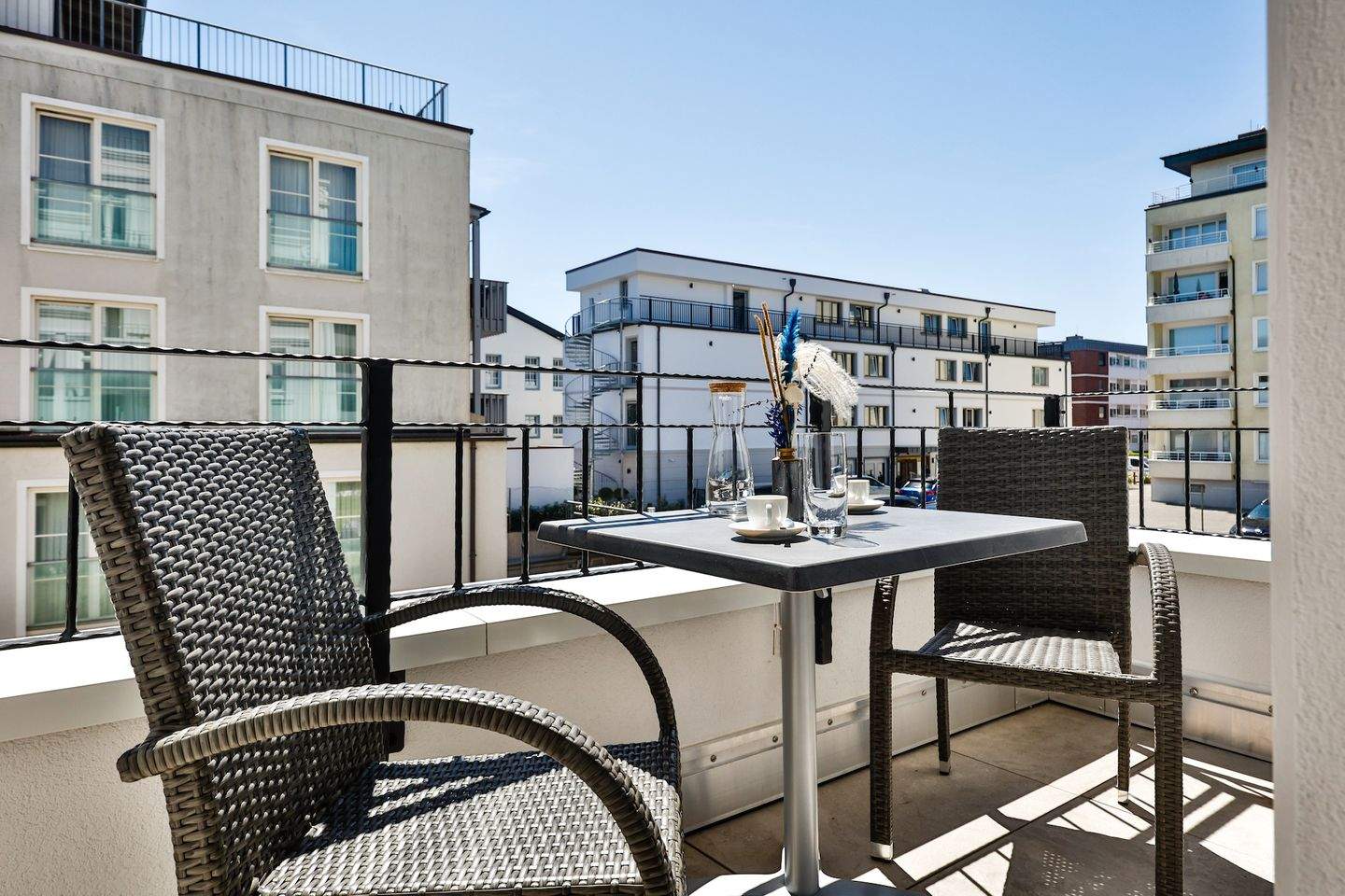 Diese moderne 3-Zimmer Ferienwohnung verfügt über 2 Bäder und 2 Balkone (Süd- und Nordausrichtung) und überzeugt mit ihrem großzügigen Grundriss.