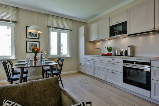 Diese hochwertige Ferienwohnung bietet eine voll ausgestattete Küche mit modernem Komfort, Fußbodenheizung, TV-Flachbildschirm und Musikanlage. Waschtrockner (Kombigerät) vorhanden. Genießen Sie entspannte Stunden auf den schönen Balkonen!