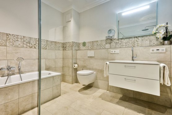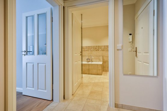 Barrierefreiheit: Die Wohnung und das Treppenhaus sind barrierefrei gestaltet. Rollstühle und Rollatoren können im Treppenhaus abgestellt werden und es besteht die Möglichkeit, diese hier kostenfrei an Steckdosen aufzuladen. Die Bäder bieten viel Platz und haben ebenerdige Duschbereiche. Der Zugang zur Loggia/Balkon ist jedoch nicht barrierefrei.