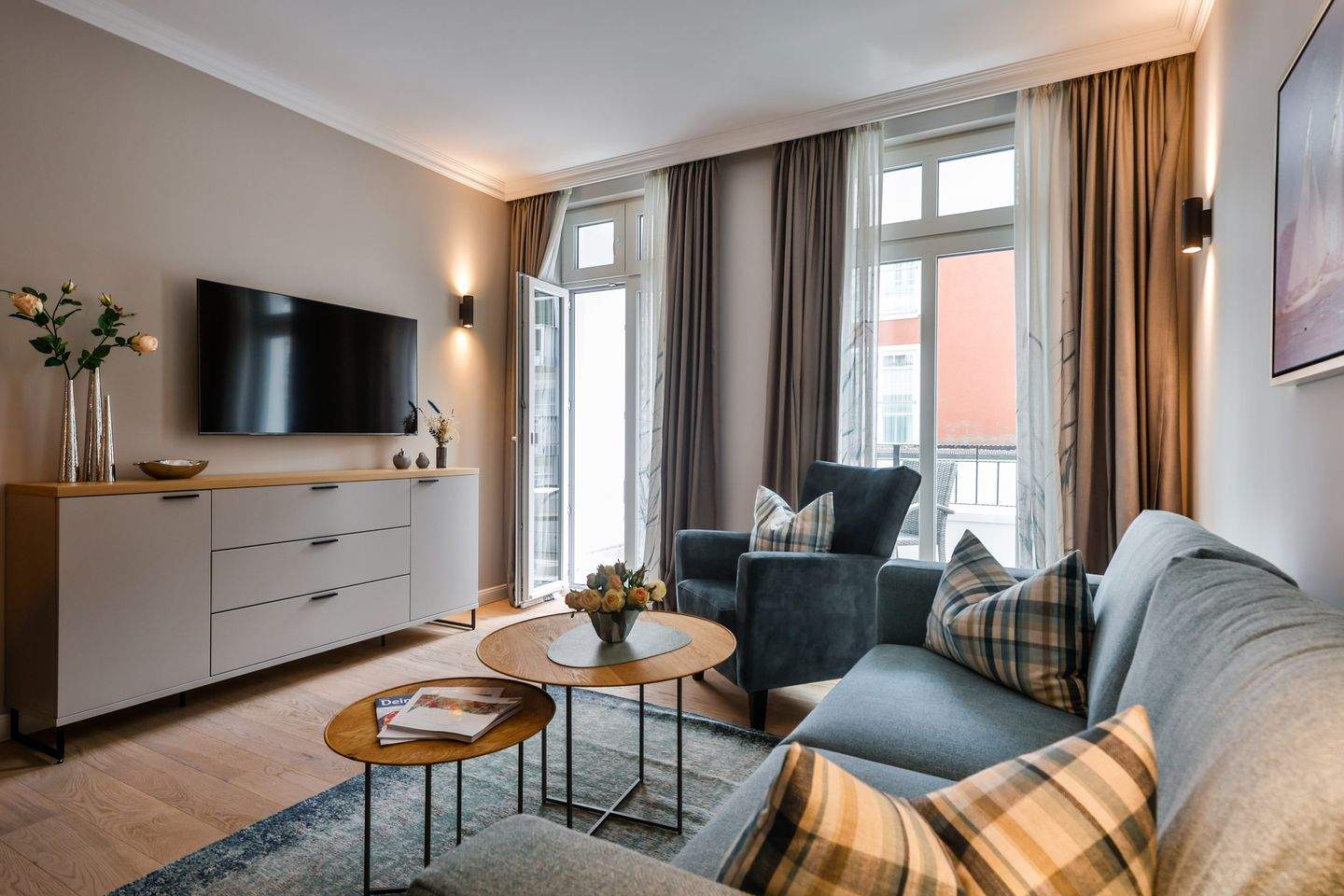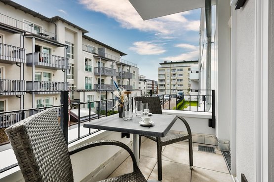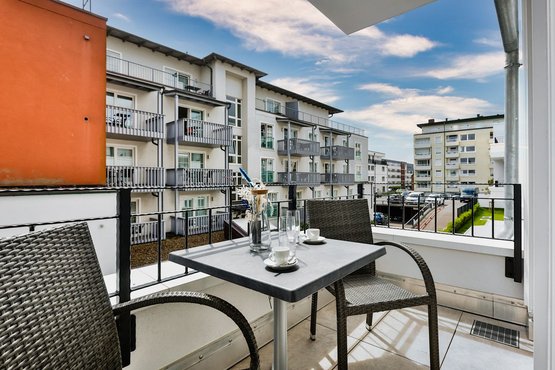 Diese moderne 2-Zimmer Ferienwohnung verfügt über 1 Bad und 1 Balkon (Südausrichtung) und überzeugt mit ihrem großzügigen Grundriss.