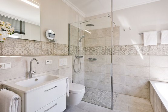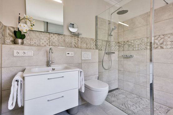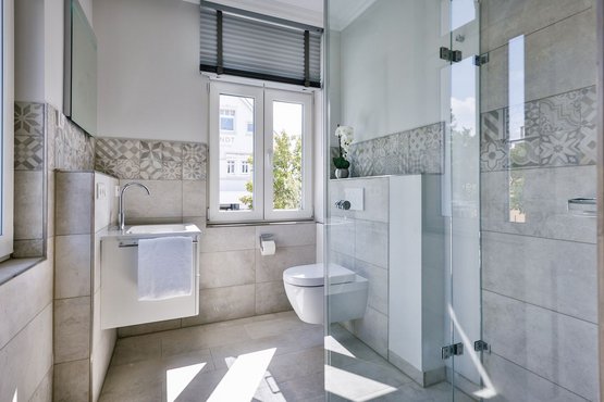 Barrierefreiheit: Die Wohnung und das Treppenhaus sind barrierefrei gestaltet. Rollstühle und Rollatoren können im Treppenhaus abgestellt werden und es besteht die Möglichkeit, diese hier kostenfrei an Steckdosen aufzuladen. Die Bäder bieten viel Platz und haben ebenerdige Duschbereiche. Der Zugang zur Loggia/Balkon ist jedoch nicht barrierefrei.