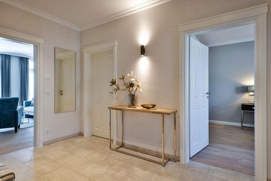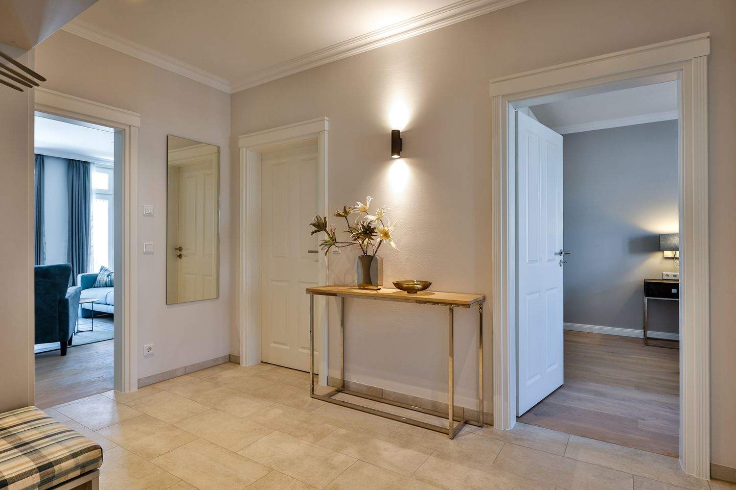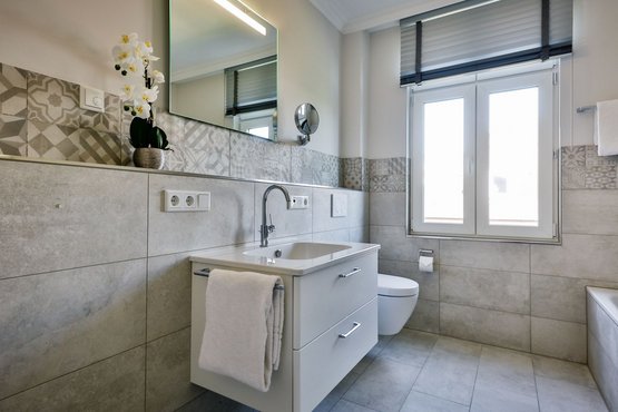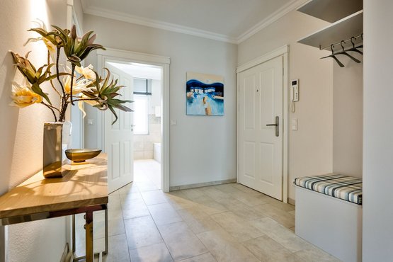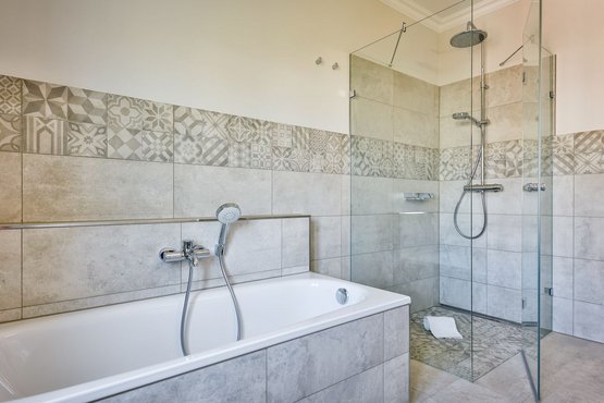 Barrierefreiheit: Die Wohnung und das Treppenhaus sind barrierefrei gestaltet. Rollstühle und Rollatoren können im Treppenhaus abgestellt werden und es besteht die Möglichkeit, diese hier kostenfrei an Steckdosen aufzuladen. Die Bäder bieten viel Platz und haben ebenerdige Duschbereiche. Der Zugang zur Loggia/Balkon ist jedoch nicht barrierefrei.
