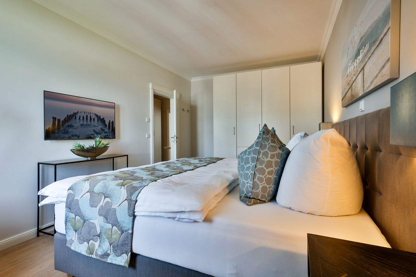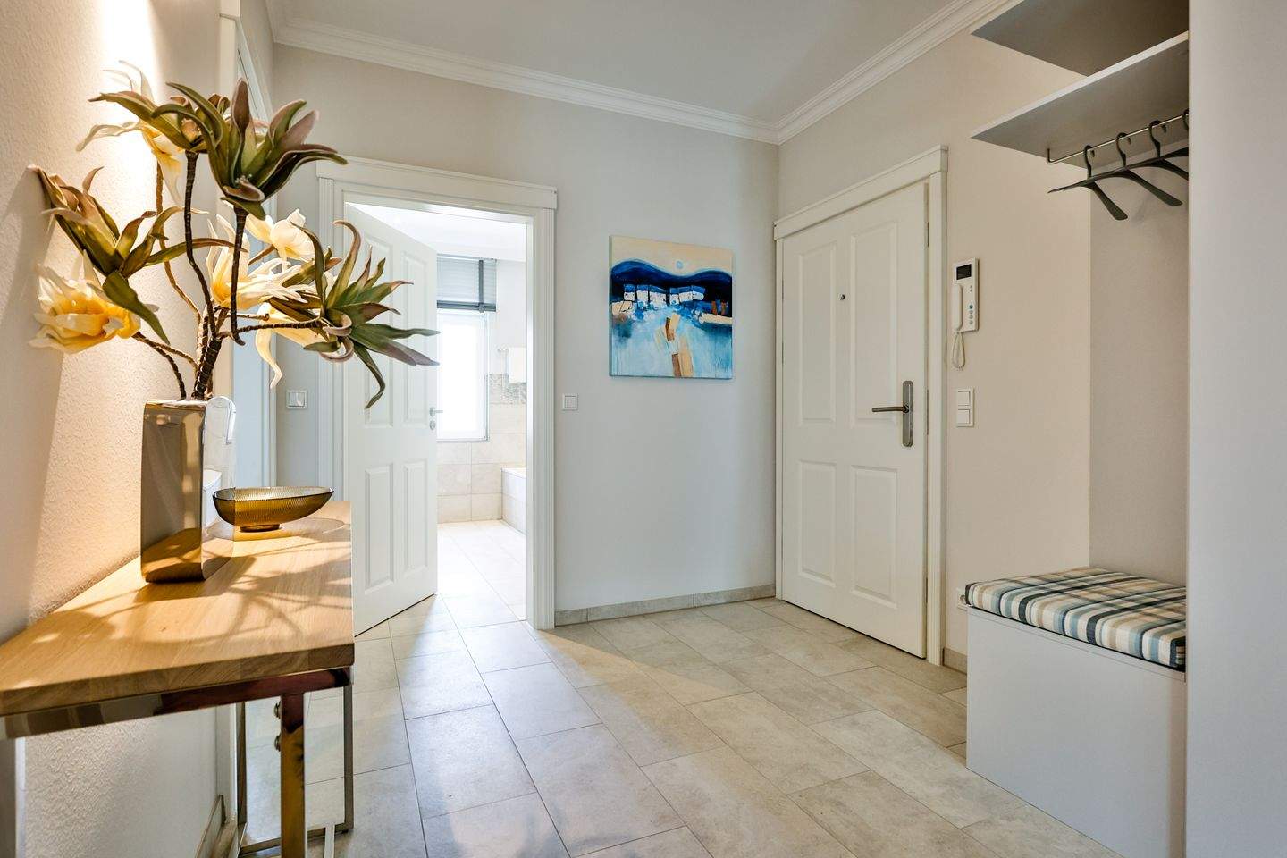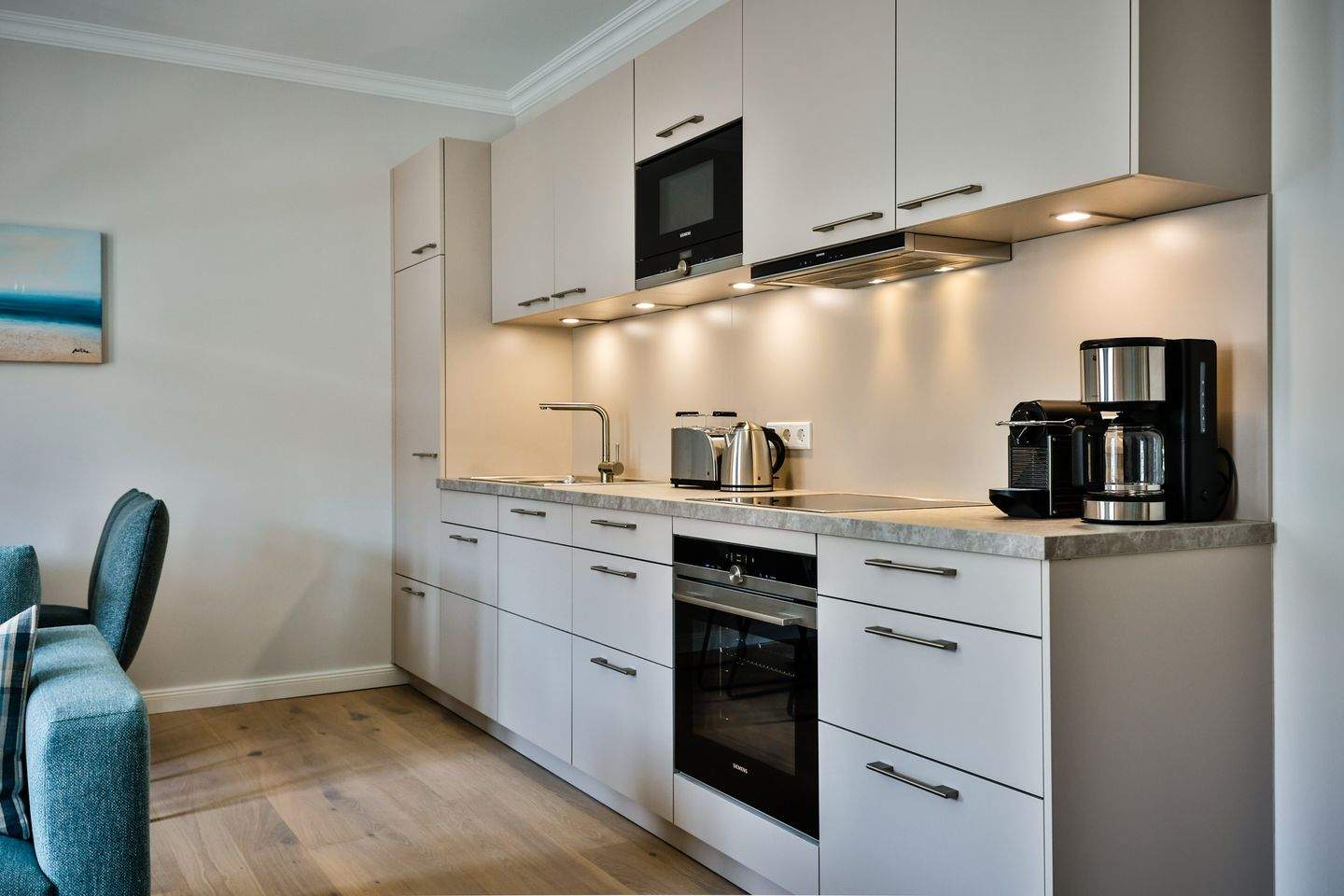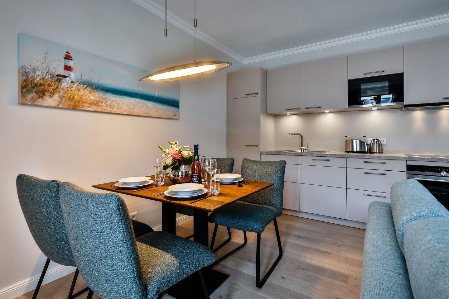 Diese hochwertige Ferienwohnung bietet eine voll ausgestattete Küche mit modernem Komfort, Fußbodenheizung, TV-Flachbildschirm und Musikanlage. Waschtrockner (Kombigerät) vorhanden. Genießen Sie entspannte Stunden auf der Loggia.