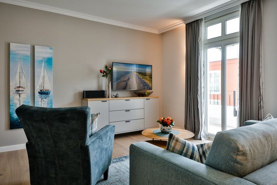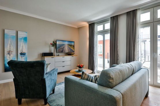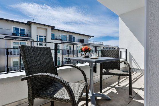 Diese moderne 2-Zimmer Ferienwohnung verfügt über ein Bad und eine Loggia (Südausrichtung) und überzeugt mit ihrem großzügigen Grundriss.
