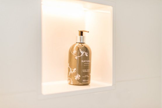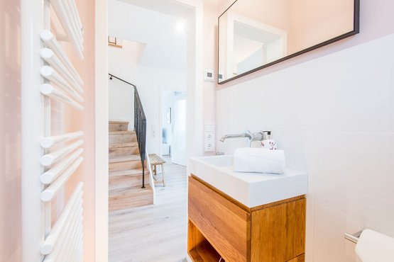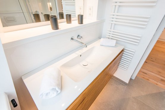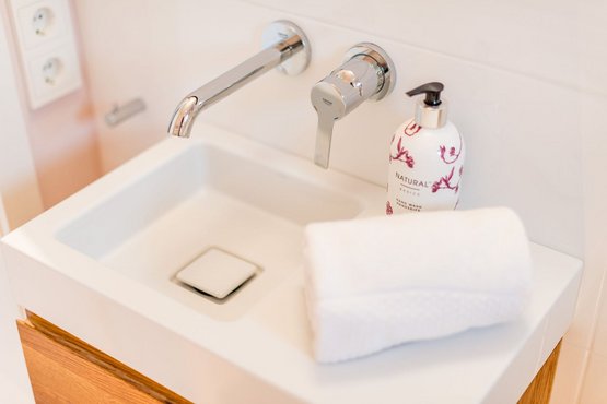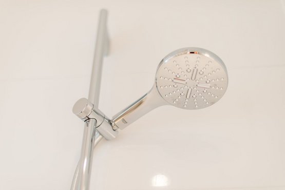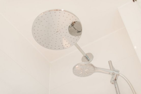 Badezimmer (Duschbad) mit Dusche, WC und Föhn.