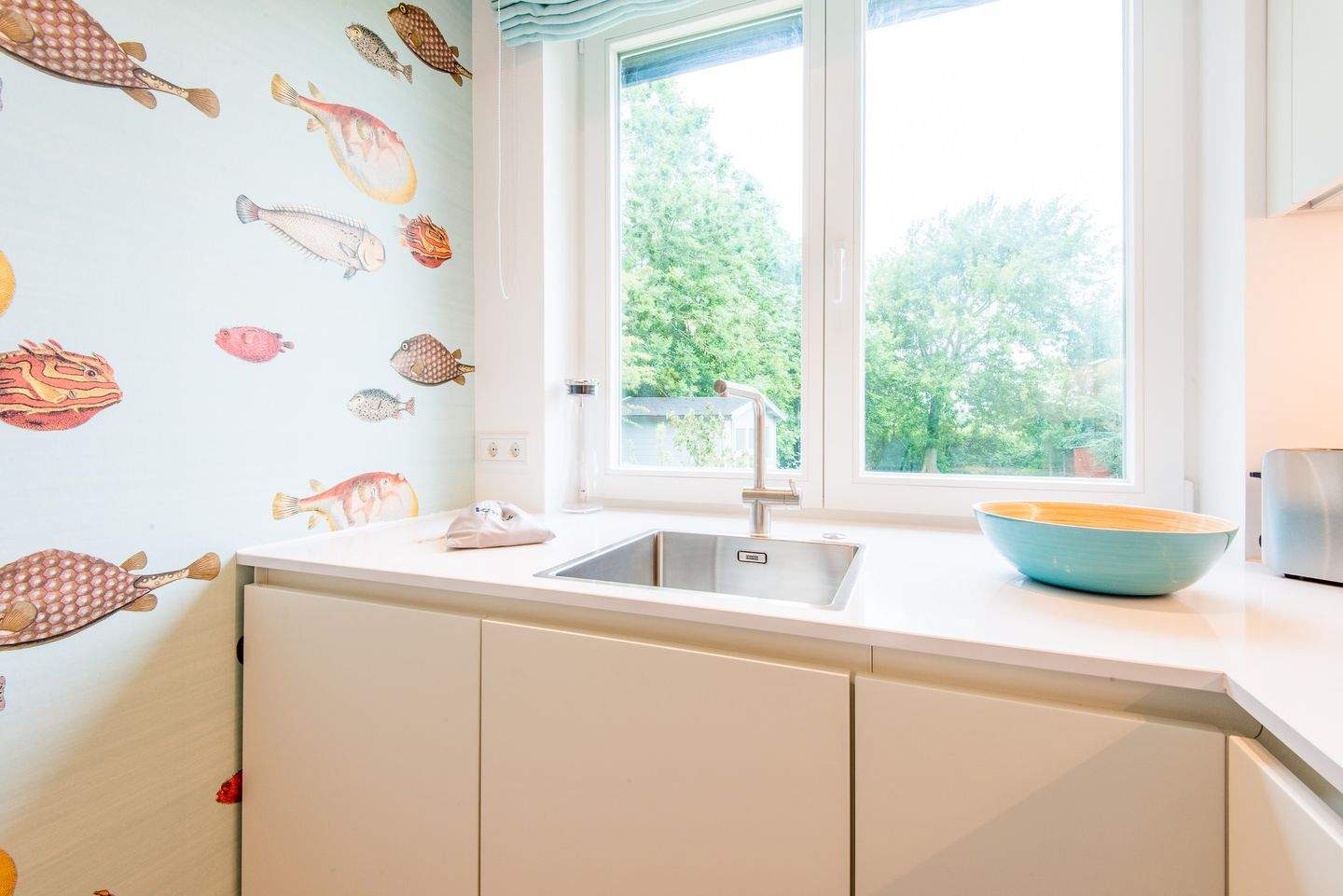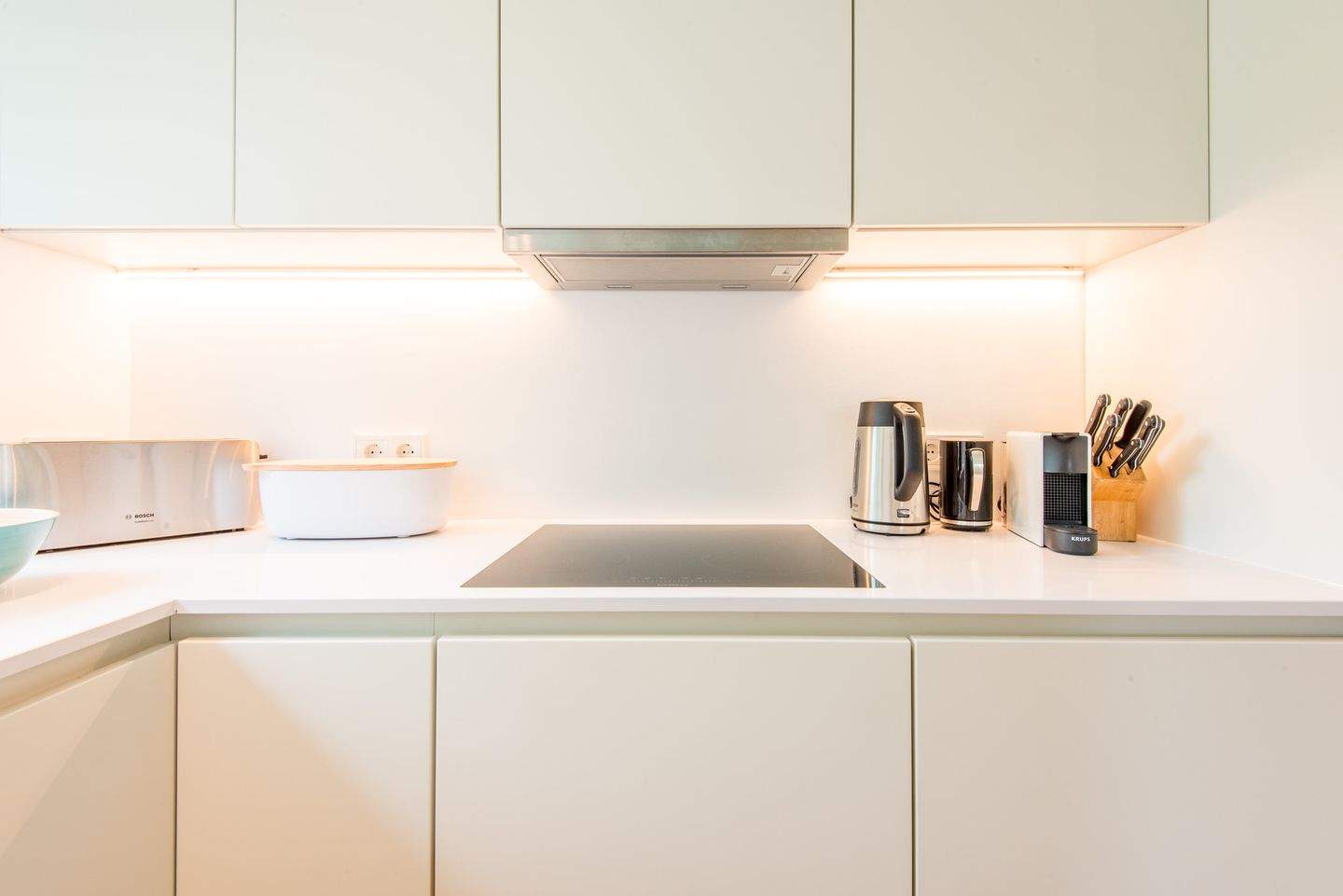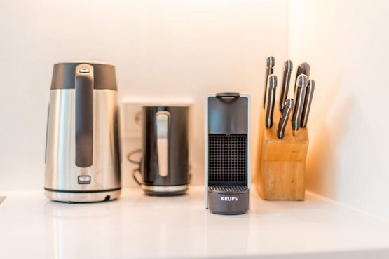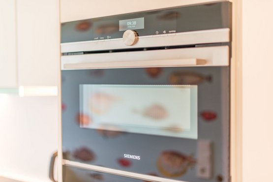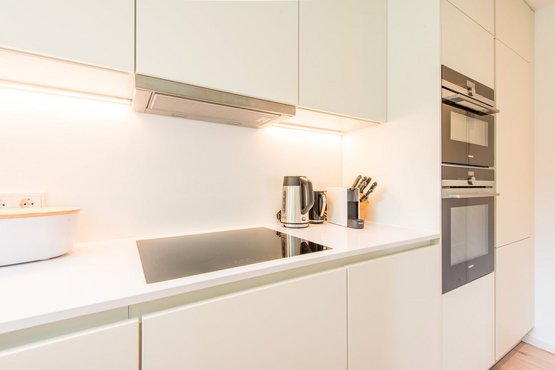 Separate Küche, Backofen mit integrierter Mikrowelle, Geschirrspüler, Cerankochfeld, großer Kühl-Gefrierschrank und dem üblichen Komfort.