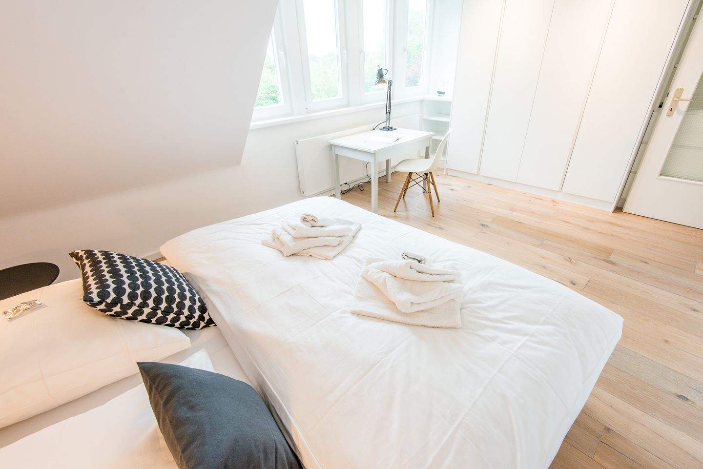 1. Schlafzimmer mit Doppelbett (2x 90x200cm) und Kleiderschrank, TV. 2. Schlafzimmer: mit Doppelbett (2x 90x200cm) und TV. 3. Schlafzimmer: mit Doppelbett (2x 90x200cm) und TV.