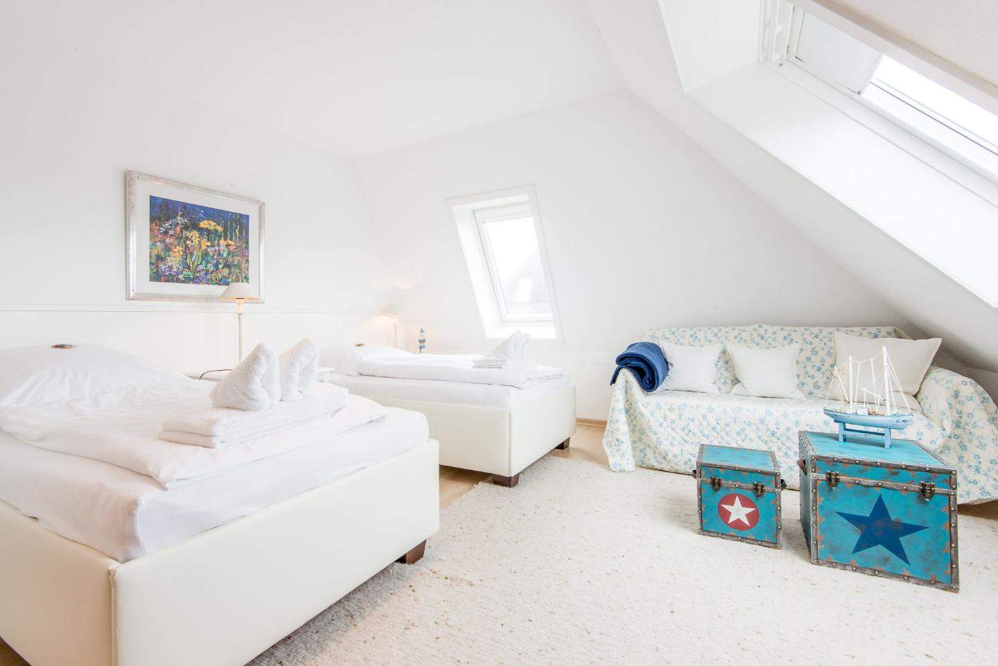 Gemütliche 3-Zimmer-Ferienwohnung mit ca. 80 m² auf 2 Ebenen (OG, DG) für bis zu 4 Personen.