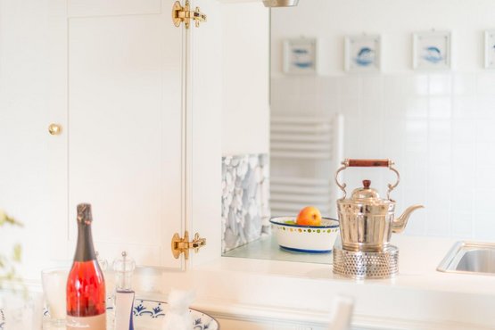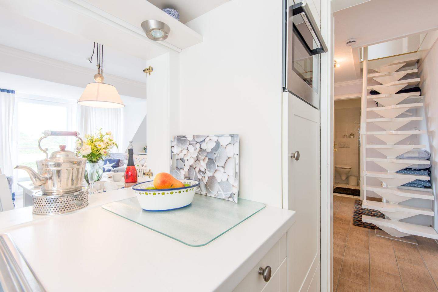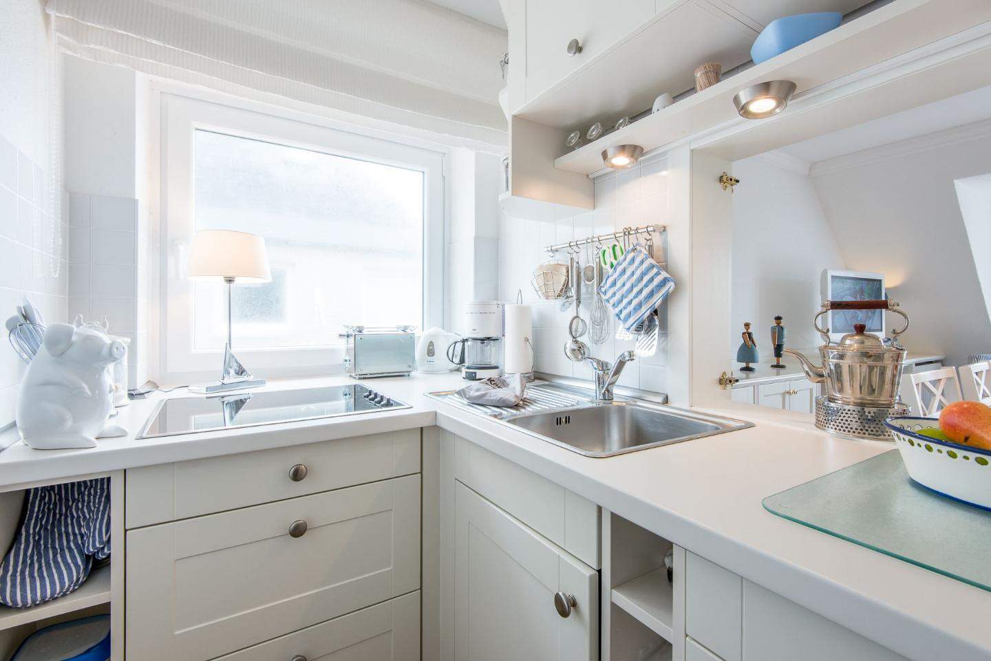 Separate Küche mit Filterkaffeemaschine, Cerankochfeld, Backofen und viel Komfort.