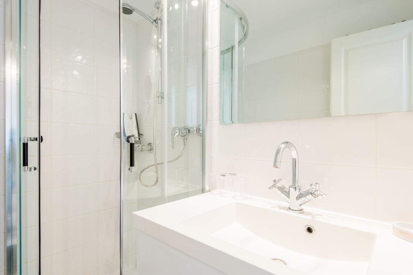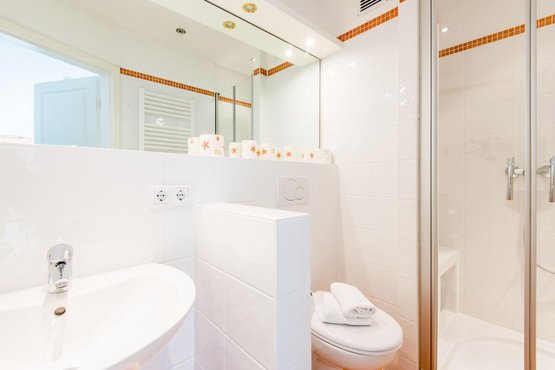 1. Badezimmer (Duschbad) mit Dusche, WC und Föhn.
