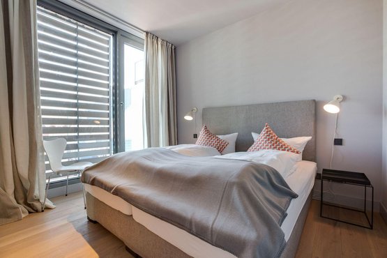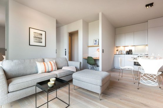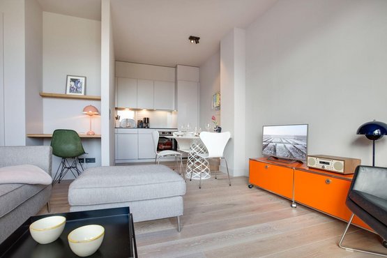 Außergewöhnlich stilsicher gestaltete 1-Zimmer-Ferienwohnung in der 'Neuen Mitte' ca. 45 m² mit vielen Designklassikern auf 1 Ebene (1. OG) für bis zu 2 Personen.