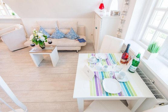 Moderne 2-Zimmer-Ferienwohnung unter Reet im 'Nuur Hiir Hüs' mit ca. 35 m² über 2 Ebenen (OG, DG) für bis zu 2 Personen.