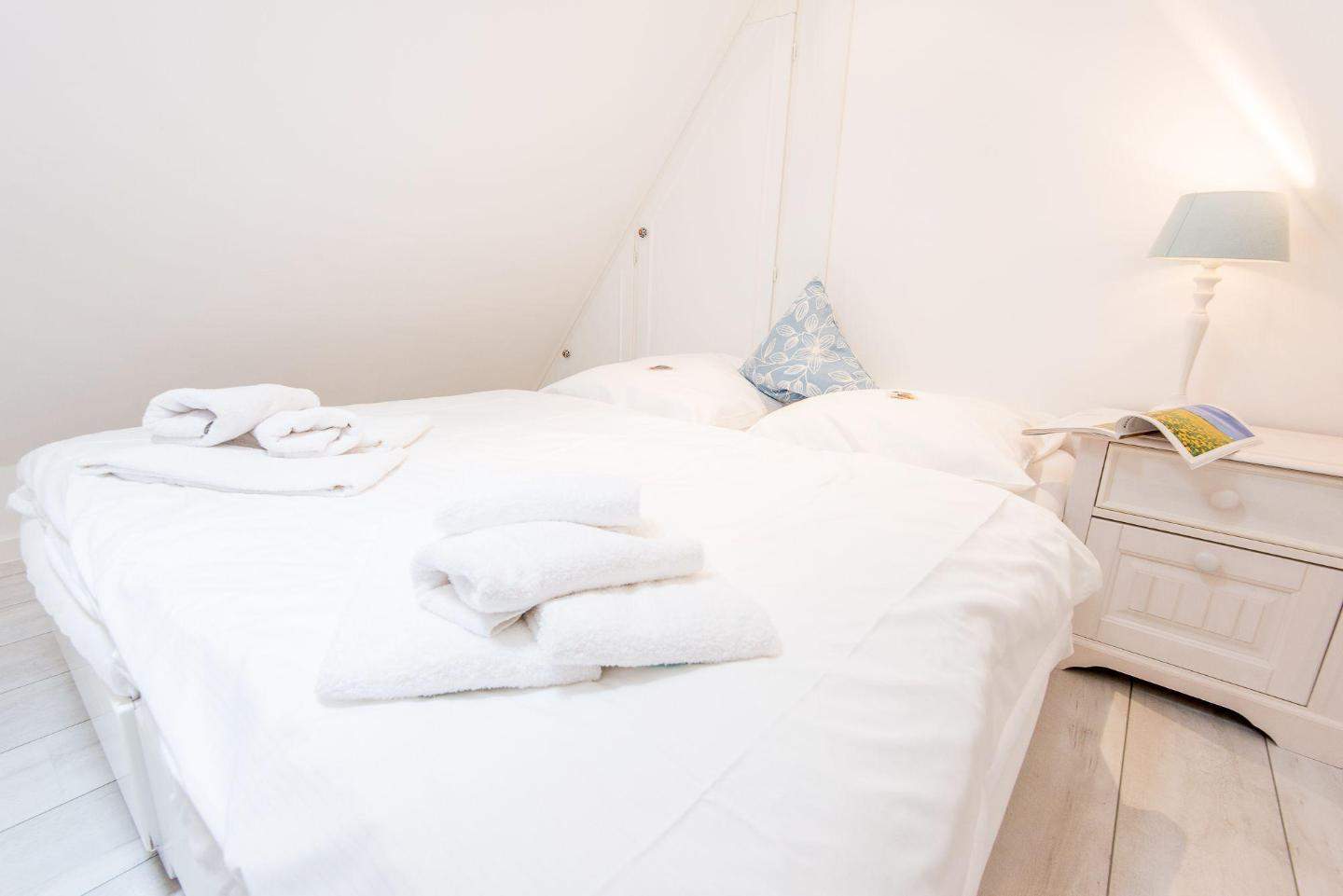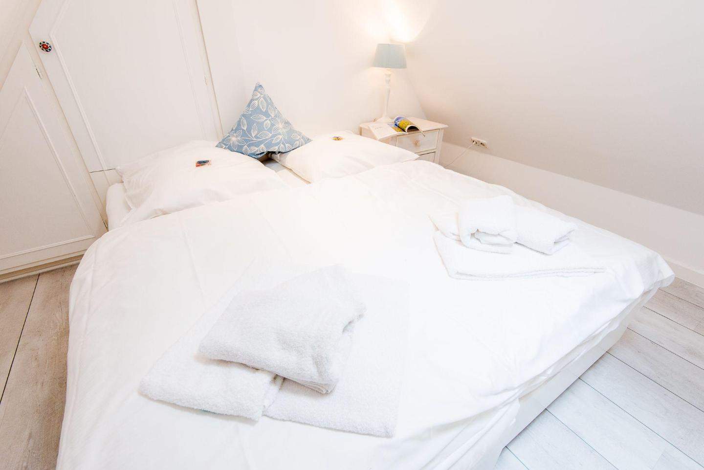Schlafzimmer mit Doppelbett (2x 90x200cm) und Kleiderschrank.