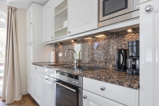 Offene Küche mit Backofen, Herd, Geschirrspüler und allem Komfort.
