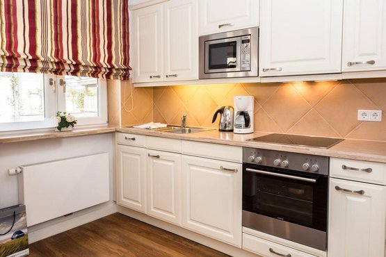 Offene Küche mit 4-flammigem Herd, Geschirrspüler, Filterkaffeemaschine und allem Komfort.
