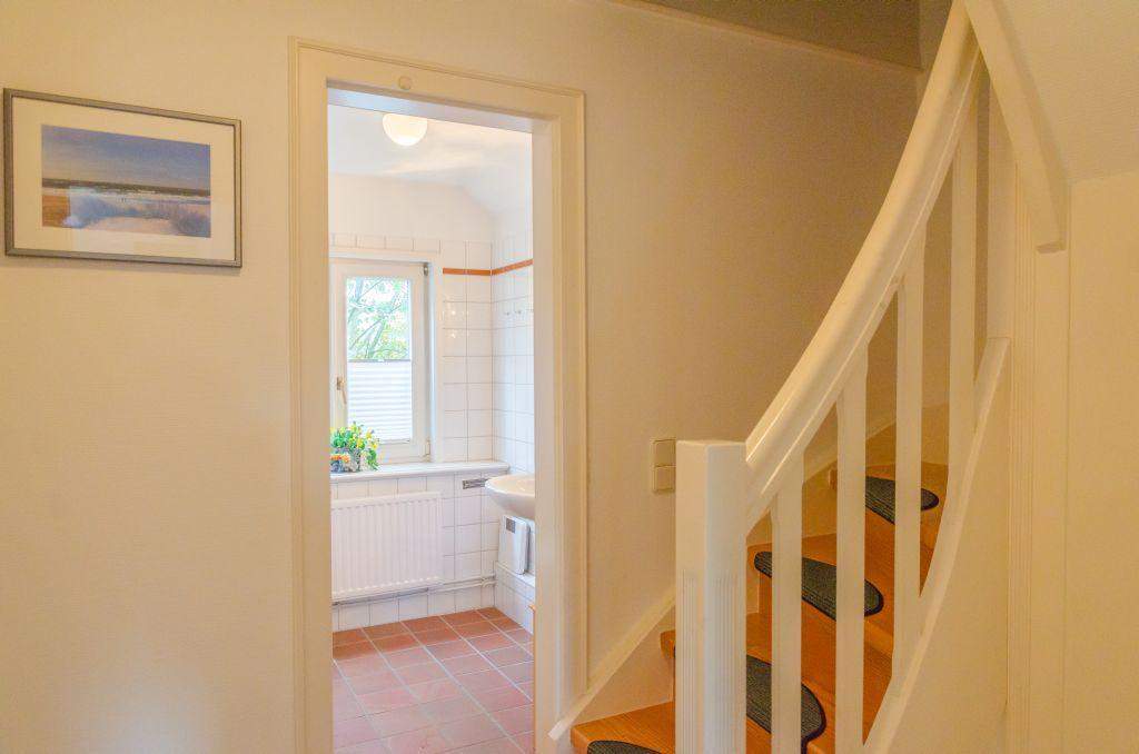 Flur mit Garderobe und Abstellkammer mit Kinderhochstuhl und Kinderreisebett (ohne Matratze) im Eingangsbereich. Gäste-WC im DG. Waschmaschine und Trockner kostenlos im Haus.