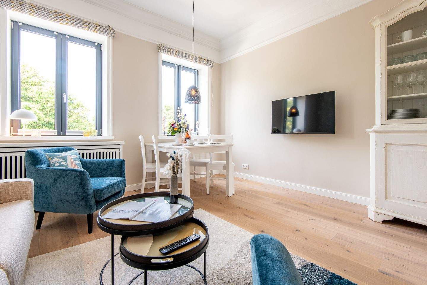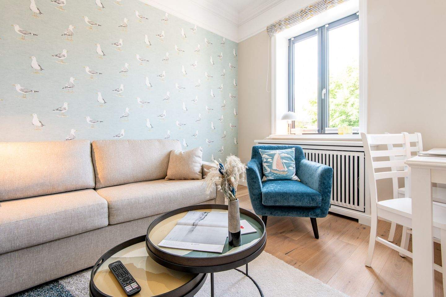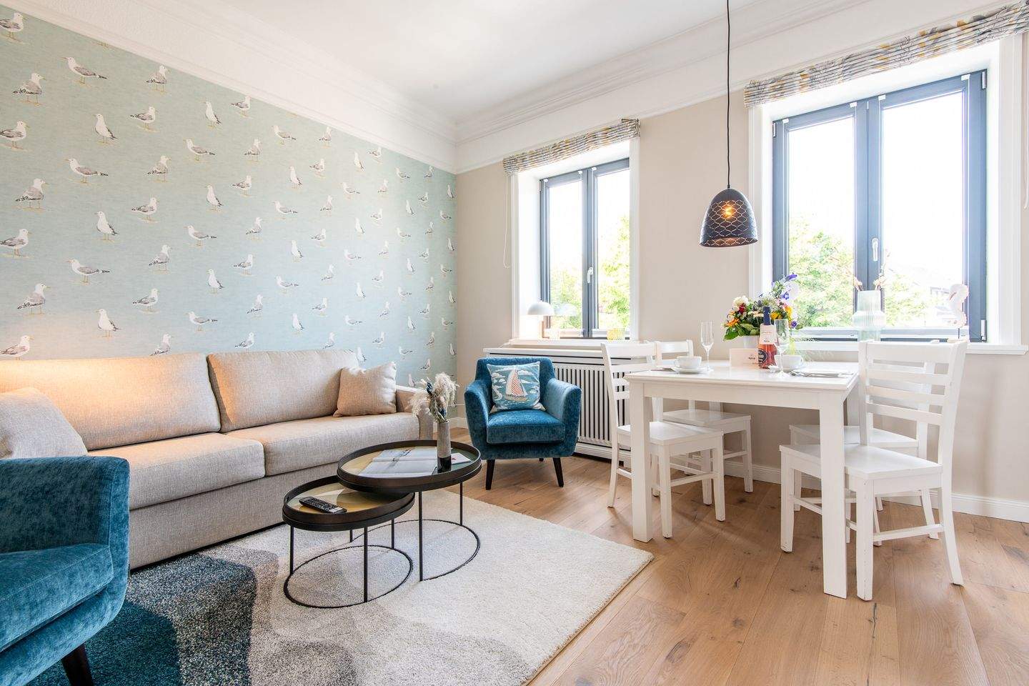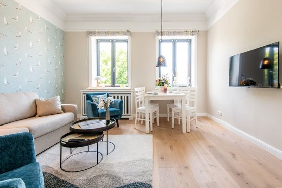 Die Nichtraucherwohnung ist sorgfältig gestaltet, um Ihnen einen gemütlichen Aufenthalt zu bieten. Das Wohnzimmer verfügt über ein komfortables Schlafsofa und eine Essecke, wo Sie Ihre Mahlzeiten genießen können.