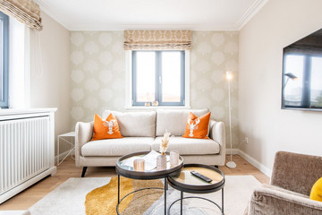 Die Nichtraucherwohnung ist liebevoll gestaltet und lädt zum Entspannen ein. Das Wohnzimmer verfügt über ein bequemes Sofa und eine Essecke, wo Sie Ihre Mahlzeiten genießen können.