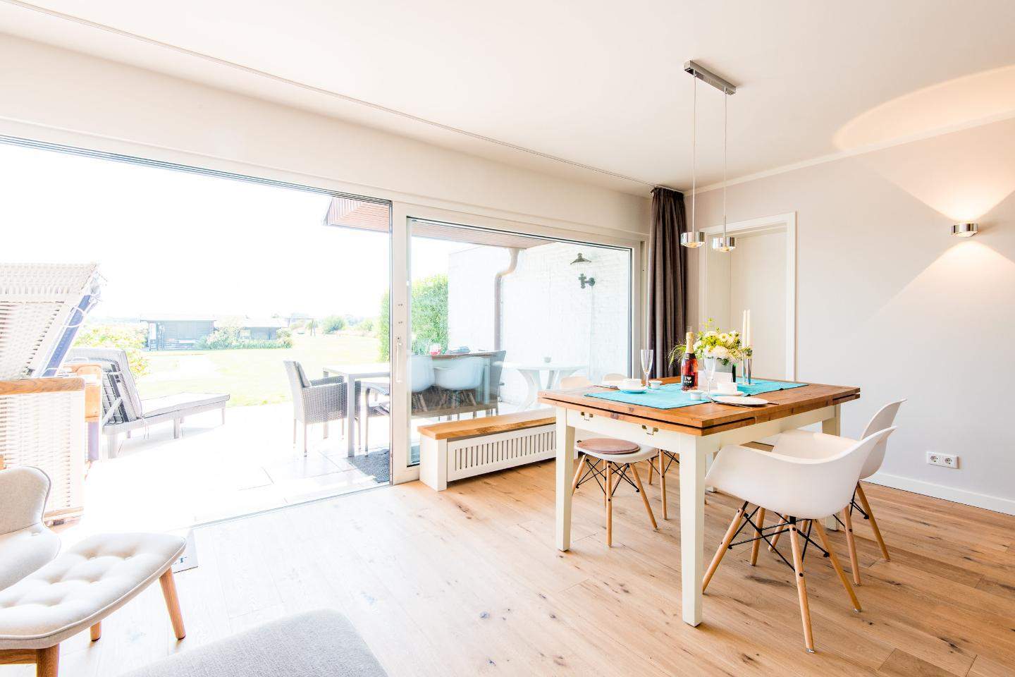 Exklusive und ruhige Lage und nur wenige Minuten zum Wattenmeer sowie zum Morsumer Ortskern. Großer Garten mit einer Südterrasse und einem traumhaften Weitblick. Nichtraucherwohnung. Das Wohn -und Esszimmer ist großzügig und gemütlich gestaltet. Genießen Sie die Sonne gemeinsam mit Ihren Lieben auf der wunderschönen Südterrasse.